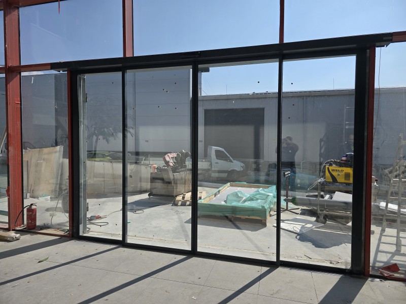 A keret nélküli fotocellás automata üvegajtó esetében 10mm vastag edzett üveget használunk.